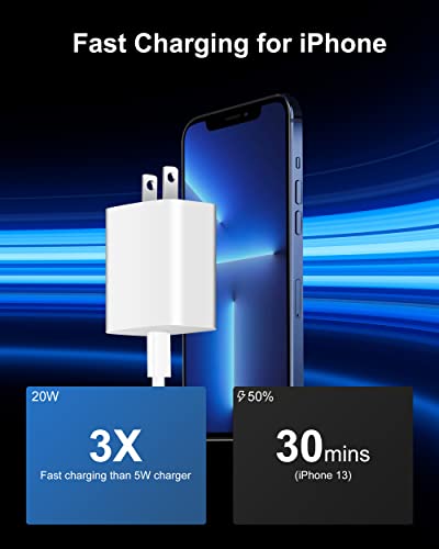 USB C Charger Block [Apple Certified], 3-Pack 20W USB-C Power Adapter Wall Charger Plug Brick Cube Fast Charging for iPhone 14/Plus/13/12/11/Pro Max/Mini, X/XS/XR, iPad Pro/Air, Google Pixel 7/6/5/4/3
